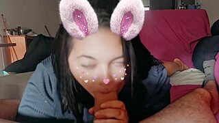 Brunette Babysitter Sucks Monster Cock Deep With Cute Face Filter On