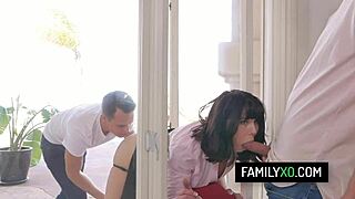 whoa kinky stepfamily dives into taboo threesome with brunette teens sucking and fucking dad uncle in wild group action 😈🔥