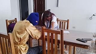 מפותה מסטודנטית לטינית קטנטונת במציצה וכוס עסיסית לציונים
