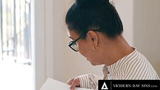 Naughty Student Takes Test with Tight Pussy!