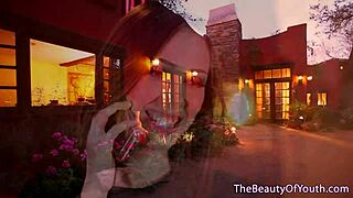 Two charming teens enjoy a steamy lesbian session by the pool.