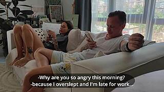Zuigen en likken aan stiefvaders ballen in slaapkamer met Aziatisch petite 18+ student