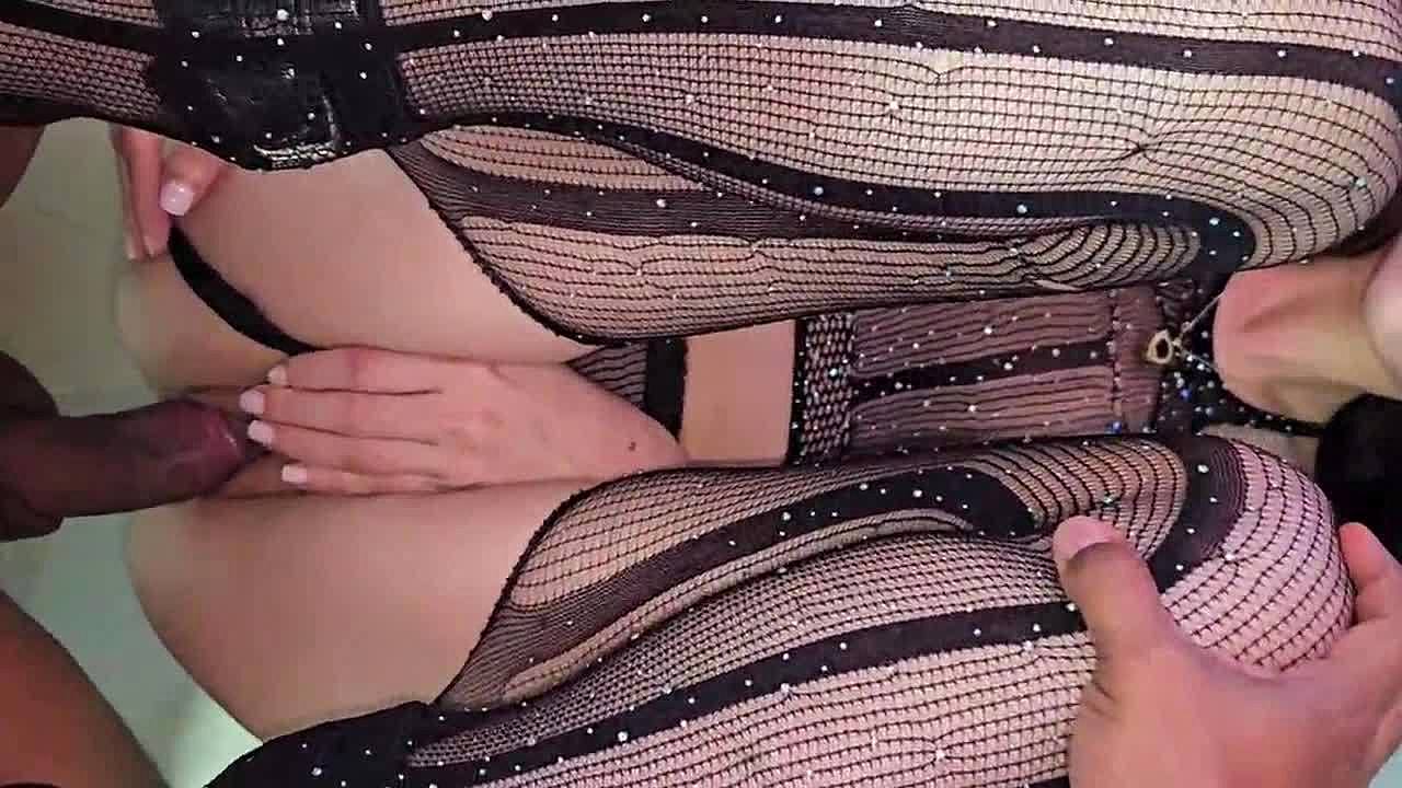 two guys double penetrate blonde in sexy lingerie.