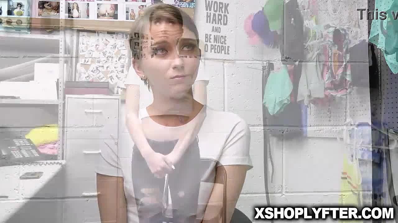 Petite teen influencer busted shoplifting, stripped, and fucked by LP officer in office.
